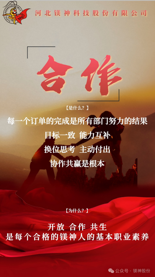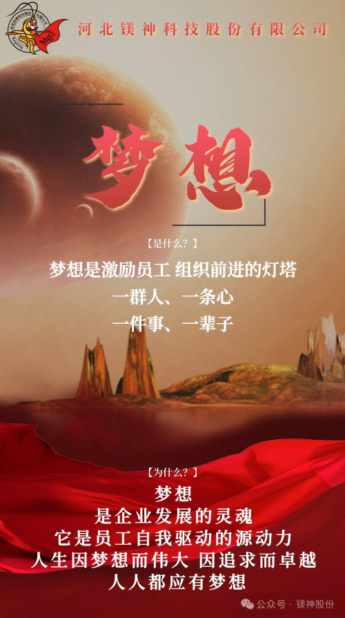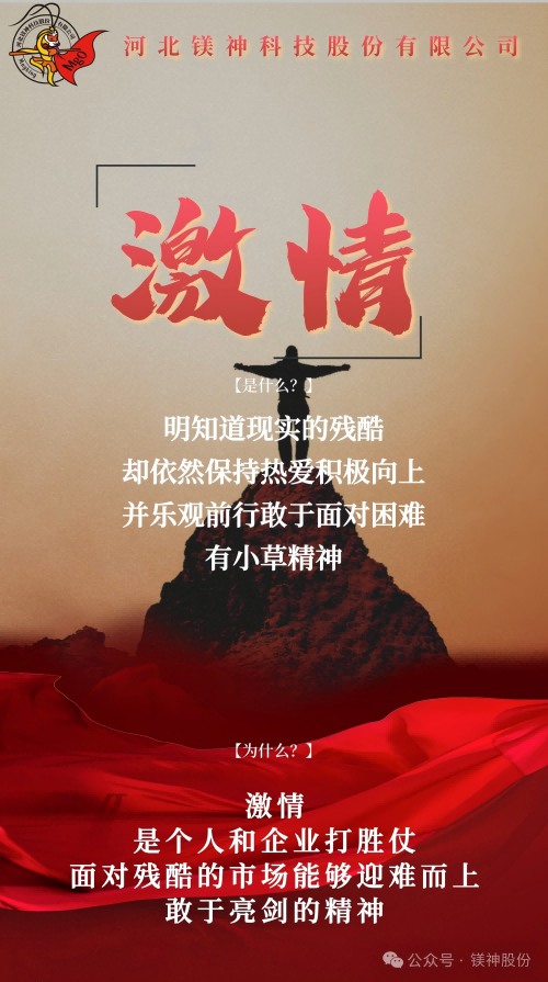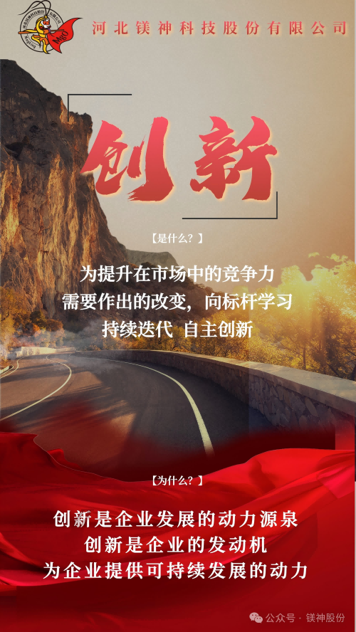 從太行山麓到走向世界舞臺的鎂質(zhì)新材料領(lǐng)航者,鎂神科技以文化力量開啟新征程。近期,經(jīng)過全體鎂神人的共創(chuàng),承載著鎂神人精神基因的企業(yè)文化2.0升級版正式發(fā)布,同時公眾號將會開展“鎂神人企業(yè)文化故事”發(fā)布活動,它是指引鎂神人行動的燈塔,是我們凝聚團(tuán)隊(duì)力量,激發(fā)創(chuàng)新活力,助力企業(yè)騰飛的重要舉措;是我們傳承精神基因,引領(lǐng)行業(yè)潮流,邁向世界舞臺的內(nèi)生動力,是我們對“創(chuàng)建百年鎂神平臺”的堅(jiān)定信念與承諾。